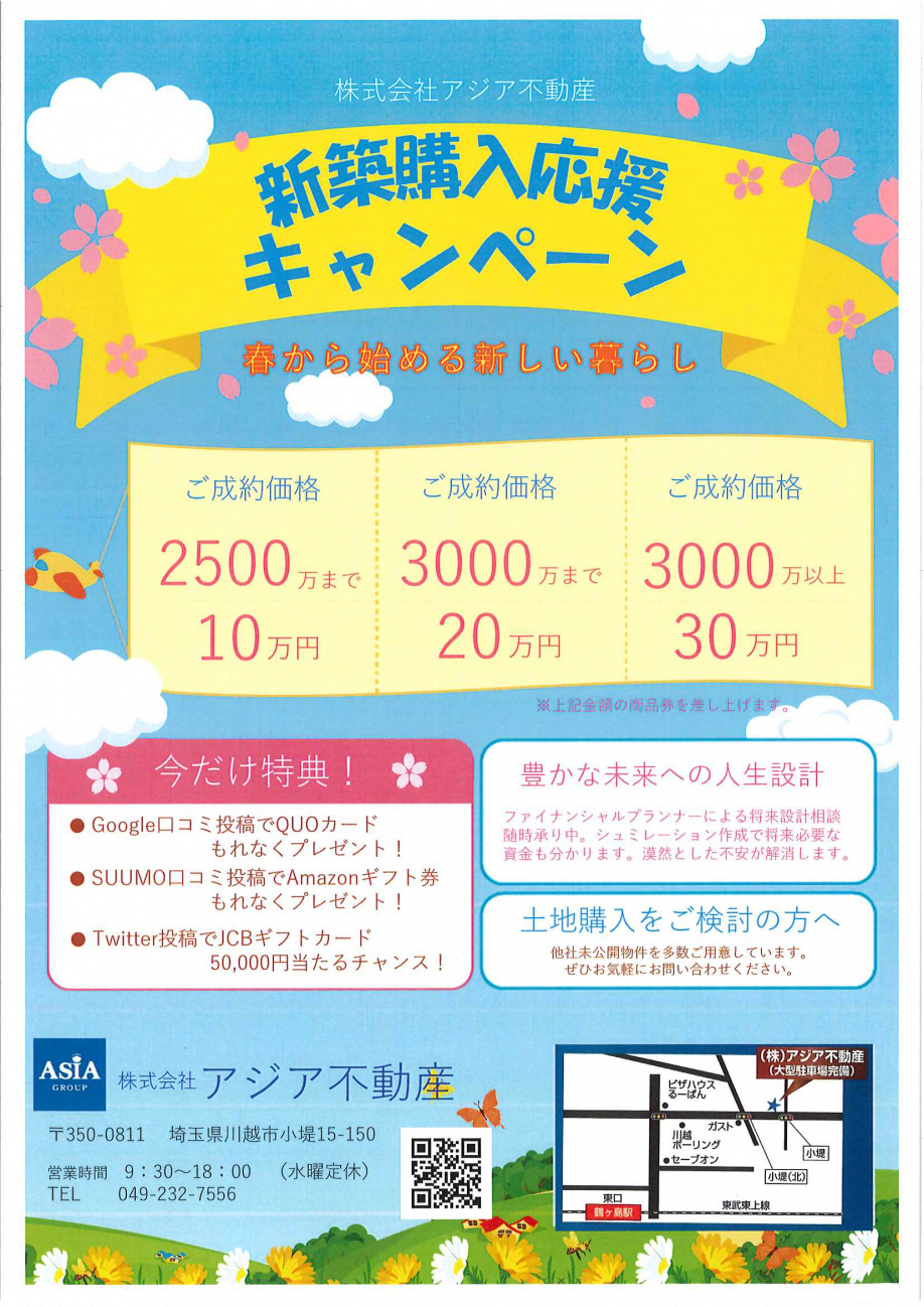 TOP-アジア不動産 > ブログ記事一覧 > 新築戸建購入応援キャンペーン実施中